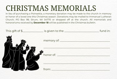Click on an image below to download the memorial form. Please return the completed form(s) to the church office by the due date listed on the form.